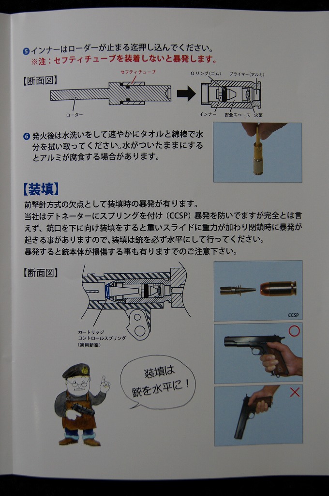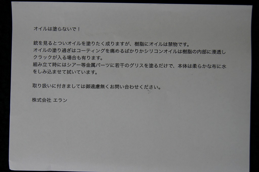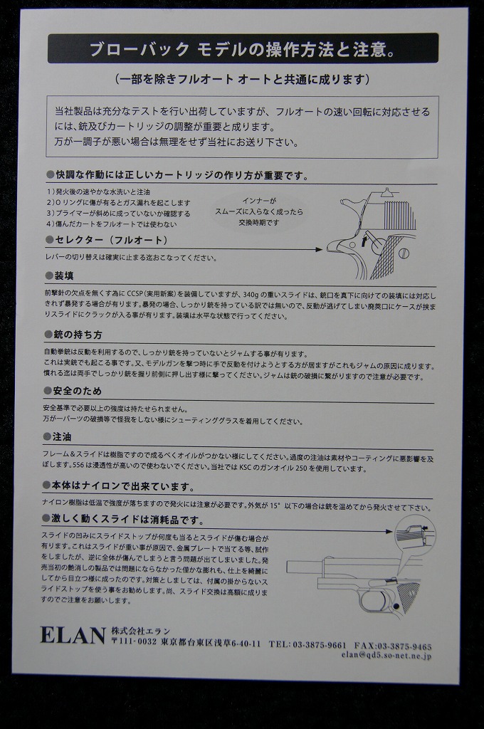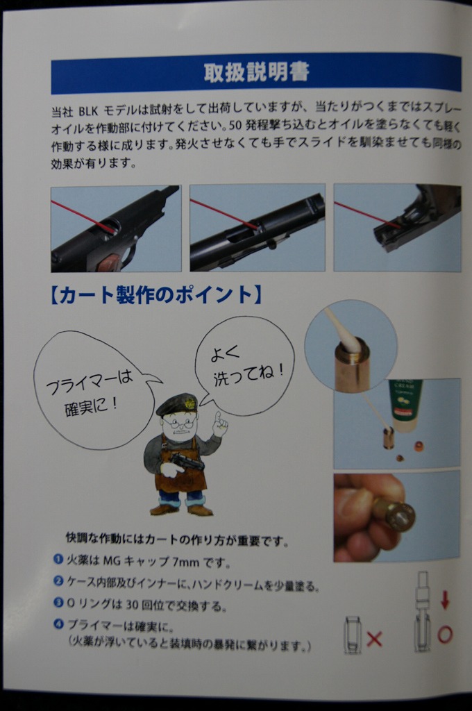 取り扱い説明書です。モデルガンで試射をしてから発送している